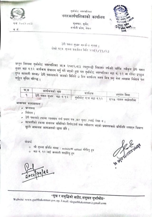 डेरी पसल सुधार सम्बन्धी सूचना (दोश्रो पटक सूचना प्रकाशन मिति: २०८२/११/२६)