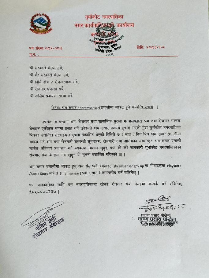 » श्रम संसार प्रणालीमा आबद्ध हुने सम्बन्धी सूचना ।
