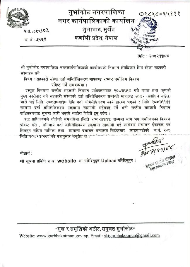 सहकारी संस्था दर्ता अभिलेखीकरण मापदण्ड २०८२ बमोजिम विवरण प्रविष्ट गर्ने सम्बन्धमा