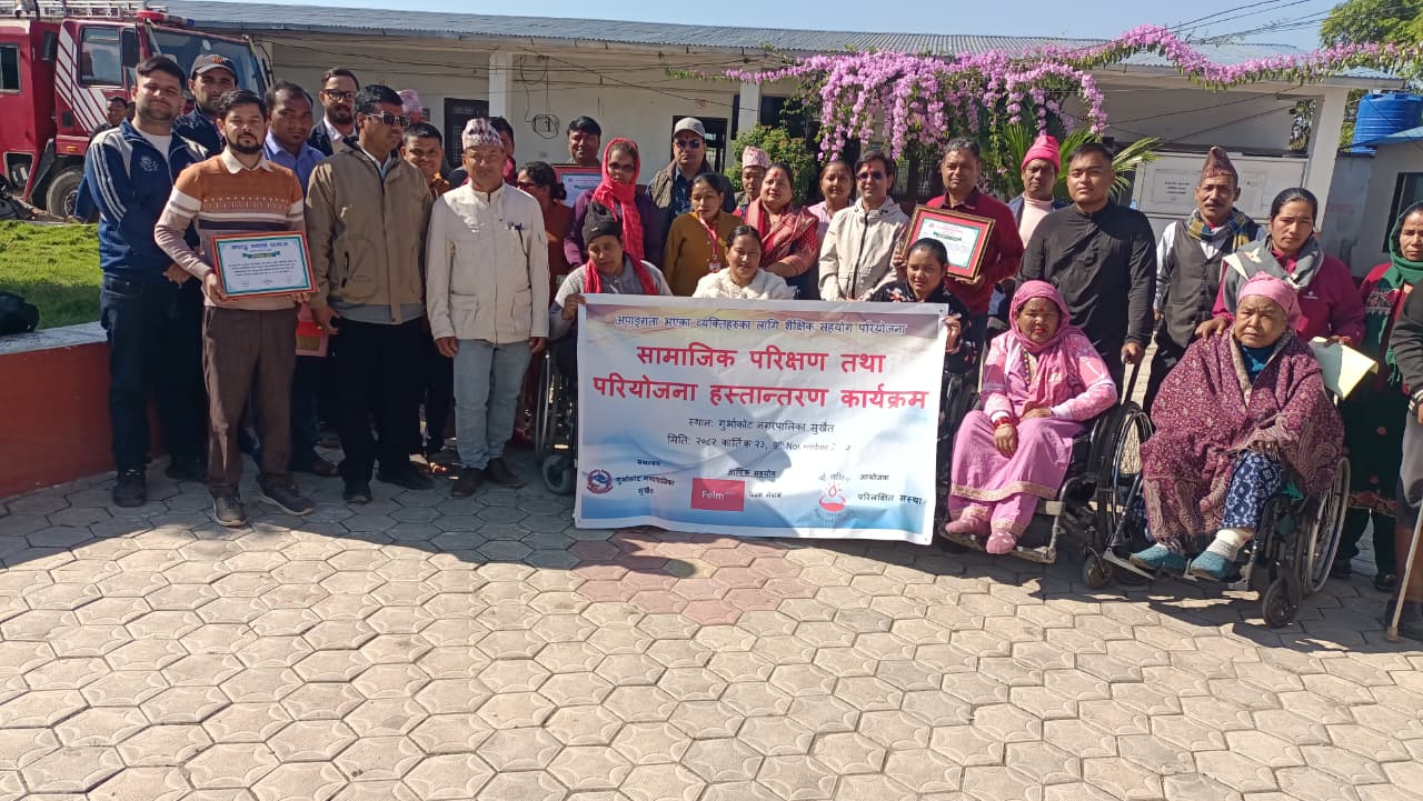 यस नगरपालिकाको समन्वय फेल्म नेपालको आर्थिक सहयोग र परिलक्षित संस्थाको आयोजनामा भएको अपाङ्गता भएका व्यक्तिहरुका लागि शैक्षिक सहयोग परियोजना सामाजिक परीक्षण तथा परियोजना हस्तान्तरण कार्यक्रम सम्पन्न भएको छ ।
