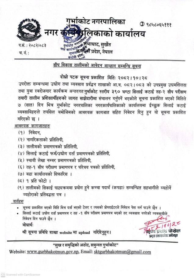 सीप विकास तालिमको आवेदन आह्वान सम्बन्धी सूचना”
