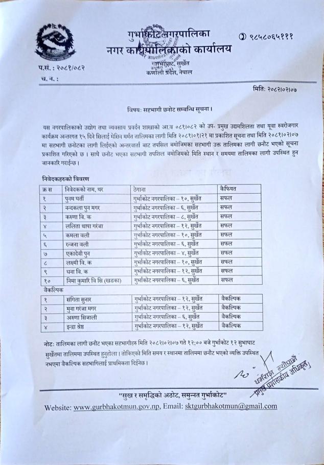 नगर कार्यपालिकाको कार्यालय, शुभाघाट, सुर्खेत, कर्णाली प्रदेश ,नेपाल ।